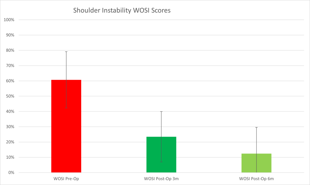 2 The WOSI Test rates the functionality of the shoulder related to instability. (Lower scores are better).